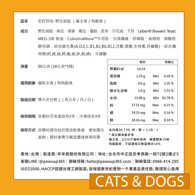 ●此款肉泥條可當作貓咪日常主食,餵食量請參考包裝標示